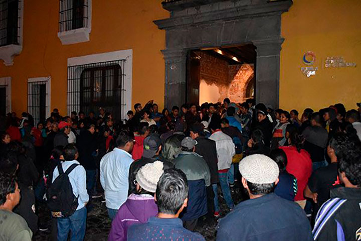 Puebla, Puebla. Tras la agresión a balazos encabezada por Manuel Valencia y Martín Gallo la tarde de este miércoles 18 de octubre en el tianguis de San Martín Texmelucan contra integrantes de Antorcha, que dejó como saldo tres heridos y tres desaparecidos, los integrantes del Movimiento Antorchista protestaron la noche de este miércoles 18 de octubre frente a la Secretaría General de Gobierno para que la dependencia encargada de la política interior del estado ponga un alto definitivo a los asesinatos, atentados y amenazas contra dirigentes e integrantes de la organización.