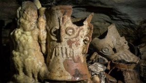 MERIDA, Yucatán.- Más de 200 incensarios tipo Tláloc, así como braseros, vasijas, cajetes, malacates y metates miniatura que forman parte de siete ofrendas, han sido descubiertas en la cueva Balamkú, ubicada a 2.7 kilómetros al este de la Pirámide de El Castillo o Templo de Kukulcán, en Chichen Itzá.
