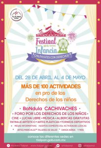 En el marco de los festejos por el Día del Niño y la Niña, la alcaldía Tlalpan realizará el Festival por la Infancia Itinerante “Chilpayates con Derechos” del 28 de abril al 4 de mayo en distintas sedes de la demarcación, el cual tendrá actividades recreativas con un enfoque pedagógico, de prevención de la violencia y de protección de los derechos de la niñez.