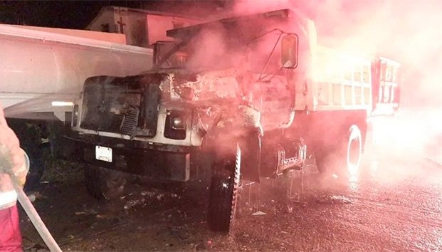 madrugada de este jueves, sujetos armados incendiaron dos camiones de volteo y
